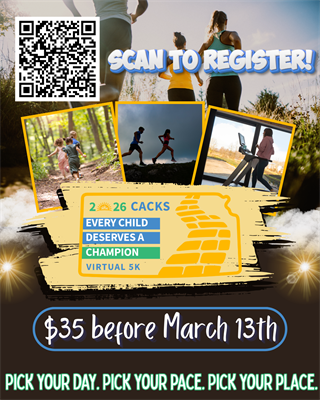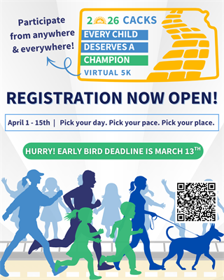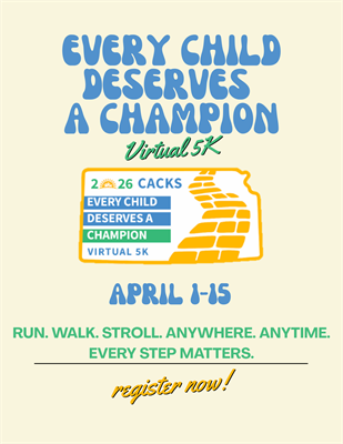 Champions for children are rising up across Kansas and beyond. Whether you’re a serious runner, a weekend walker, or a family taking a stroll with the dog, you can join the movement to protect our state's most vulnerable kids.