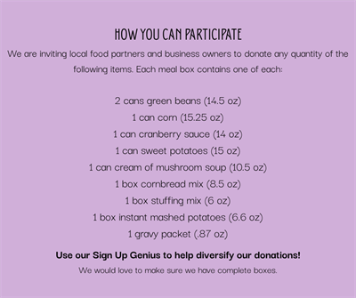 Build a community. Help feed families this holiday season. Uplift the arts!