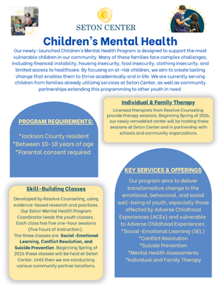 Additionally, the flyer contains the link to sign up for the event and information about our local Children's Mental Health program, called Seton CARES, here at Seton, that is also provided at no cost!