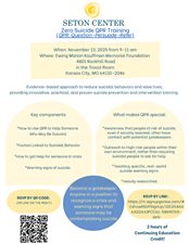 Seton Center is hosting a Zero Suicide Prevention training on November 13th from 9 am-11 am at the Ewing Marion Kauffman Memorial Foundation and we'd love to invite you, your staff, and your community.